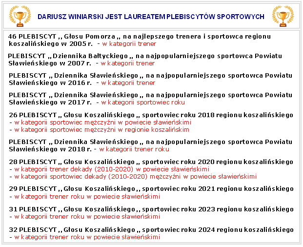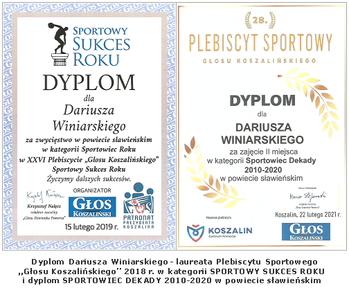 W 1999 r. Dariusz Winiarski - rozpoczyna treningi Ju Jitsu. Uczestniczy w licznych szkoleniach Ju Jitsu w Katowicach, Łodygowicach, Bytomiu i Żywcu organizowanych przez Polski Związek Ju Jitsu (PZJJ) i Polską Federację Sztuk Walki i Sportów Obronnych (PFSzWiSO). W 2002 r. kończy kurs instruktora sportu Ju Jitsu. W tym samym roku zdaje na 1 dan w Ju Jitsu. Kolejny stopień mistrzowski 2 dan zdobywa w 2004 r. W 2005 r. zostaje instruktorem i przedstawicielem na woj. zachodniopomorski i pomorskim Polskiej Federacji Sztuk Walki i Sportów Obronnych i Polskiego Związku Ju Jitsu. Pod kierunkiem Dariusza Winiarskiego na Mistrzostwach Polski Ju Jitsu (PZJJ) w Mysłowicach 21.10.2006 r. czołowa zawodniczka - Ashihara Karate Bogumiła Wicher z Darłowa zajmuje 5 miejsce w kategorii seniorek do 62 kg. W 2006 r. zostaje promowany na 3 dan Ju Jitsu - PFSzWiSO. Egzamin na 4 dan zalicza w 2008 r. Po wielu latach treningu i szkoleń Dariusz Winiarski w 2013 r. zostaje promowany przez Polska Federację Sztuk Walki i Sportów Obronnych na 5 dan - Ju Jitsu, a w 2015 r. przez kolegium dan Polskiego Związku Ju Jitsu. Dariusz Winiarski - zostaje także uhonorowany przez PFSzWiSO i PZJJ tytułem shihan w Ju Jitsu (w języku japońskim znaczy mistrz, profesor - nauczyciel godny naśladowania).