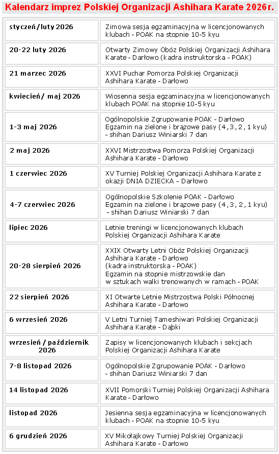 - Polskiej Organizacji Ashihara Karate (POAK)