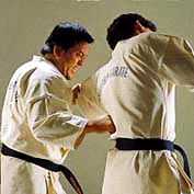 Ashihara Karate wykorzystuje techniki Judo chwytów za karategi (kumikata)